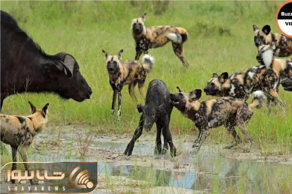 نبرد حیات وحش/ سگ های وحشی به گوساله حمله میکنند/ از مادرش کمک می خواد