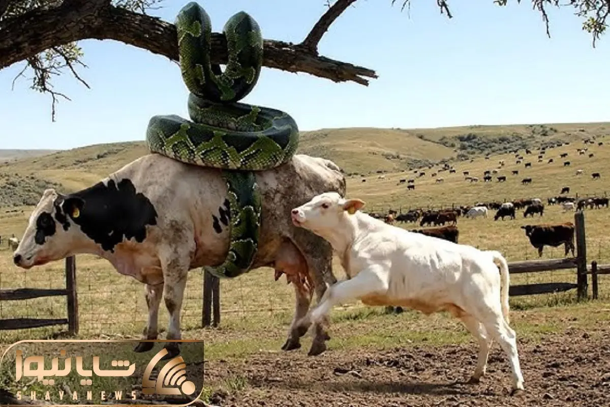 حیات وحش مصنوعی؛ گوساله شجاع برای نجات جان مادرش از چنگ پیتون غول کمک آورد