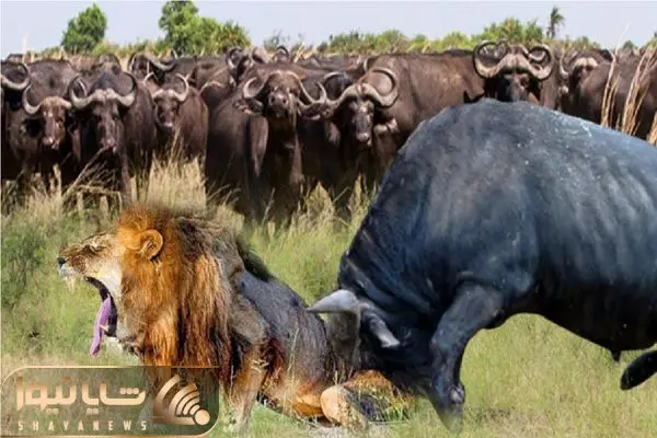 وقتی شیر به خاطر جسارتش در شکار بوفالو، تاوان جانش را می‌دهد