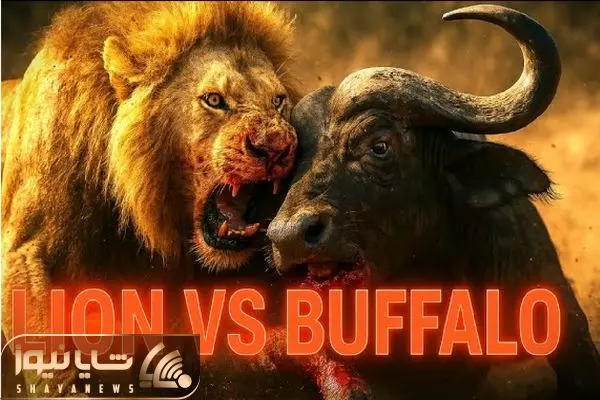 مستند حیات وحش؛ کولی گرفتن شیر از بوفالو برای رسیدن به نان