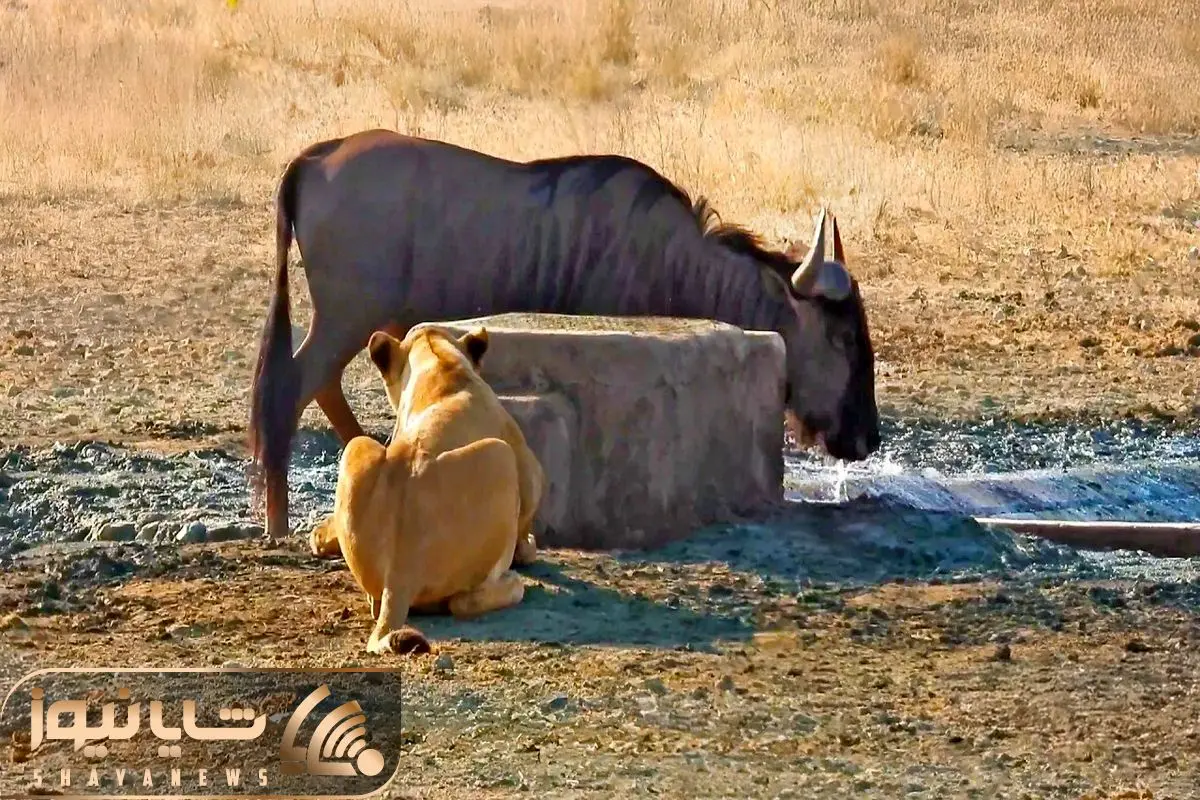 مستند حیات وحش؛ کل یالدار رفت آب بخوره اما شیر کاری کرد که آب آخرش باشه
