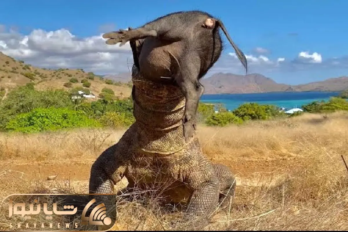 در این ویدیو شگفت انگیز خواهید دید که اژدهای کومودو چجوری خوک وحشی شکم گنده رو می بلعد