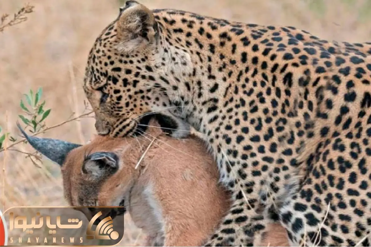 نبرد حیات وحش/گربه کوهی اسیر چنگال بی رحم پلنگ شد/تقلا های گربه کوهی فایده ای نداشت