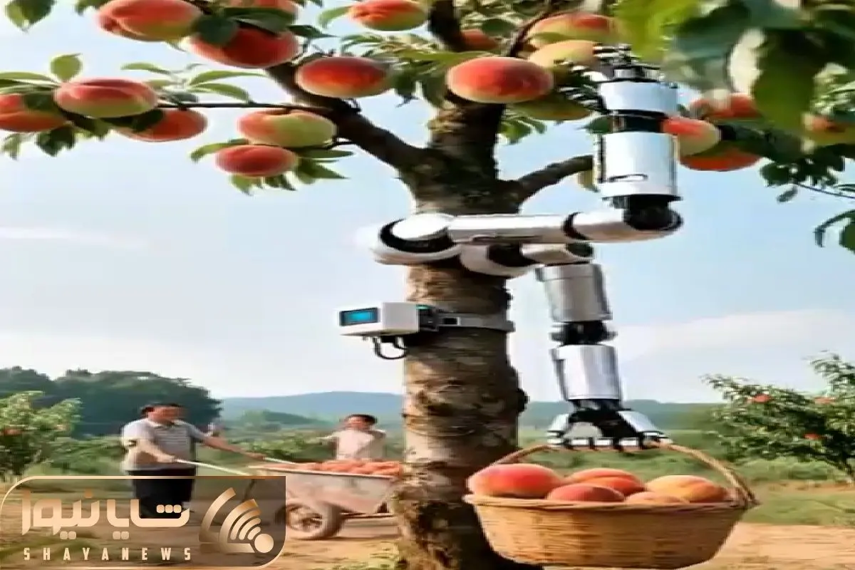 کشاورزی نوین؛ بازوی اتومات میوه چین ساختن رو تنه ی درختا میبندنش برا درو کردن