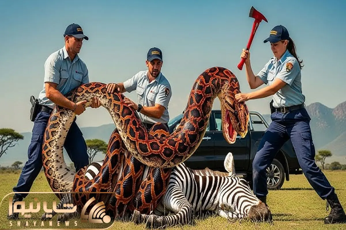 حیات وحش مصنوعی؛ گورخر شجاع برای نجات مادرش از دست پیتون غول قرمز کمک میاره