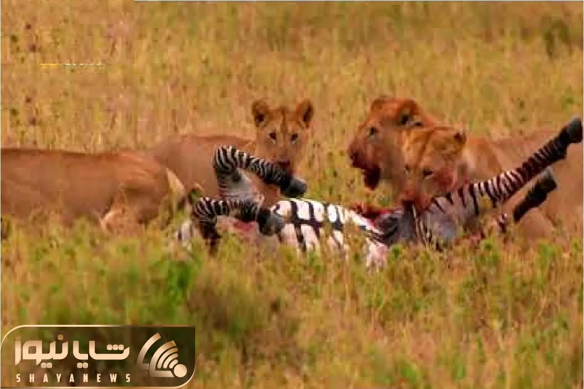 مستند حیات وحش؛ شیر با جویدن خرخره خر راه راه غذای گله را تامین کرد