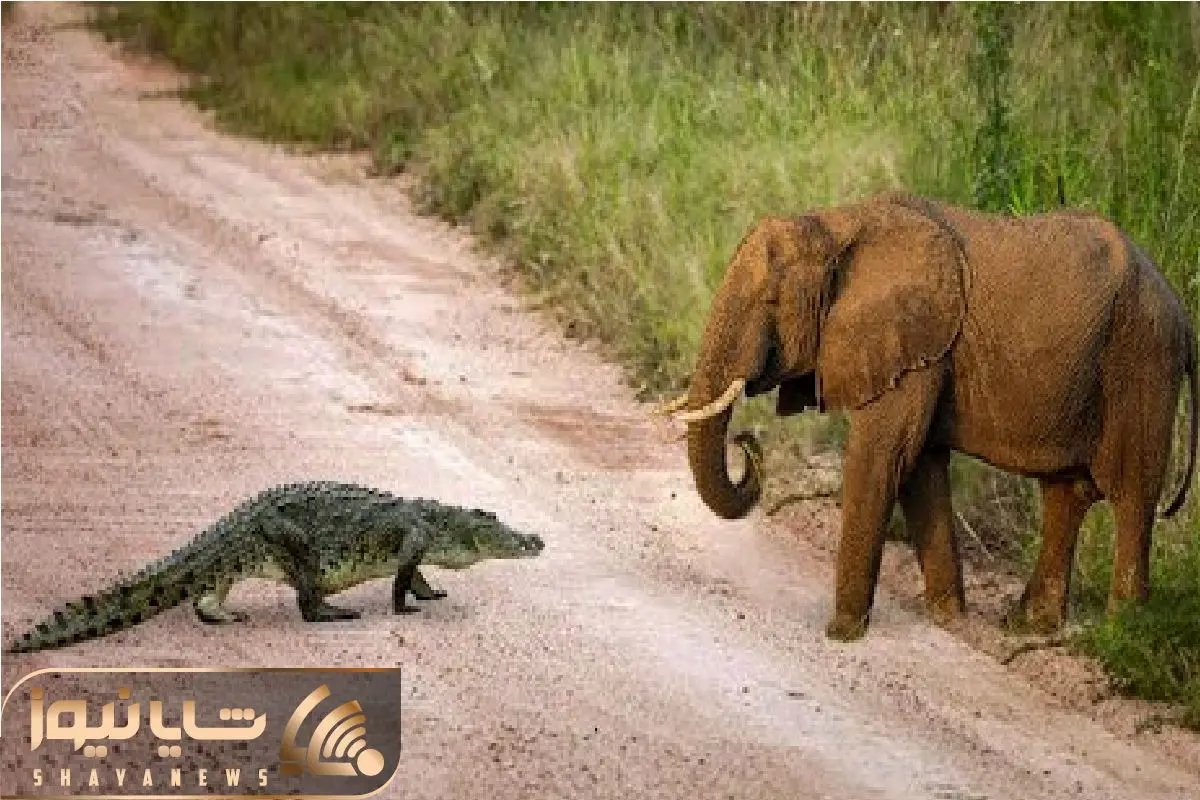 جذابیت حیات وحش؛ تمساح وحشی هدفش بلع بچه فیل بود زیر پای مادرش له شد