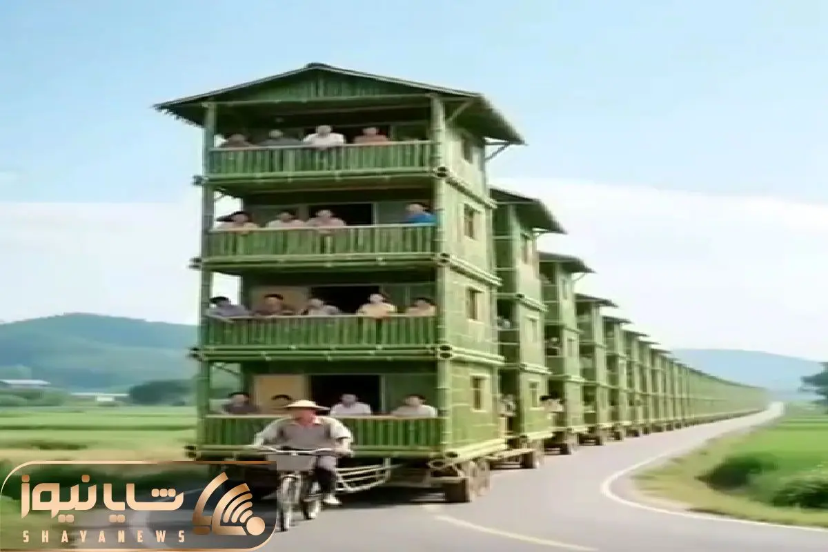 معماری خلاقانه؛ اتوبوس بامبو ساختن 200نفر نشستن توش پیرمرد با دوچرخه میبرتش انقد سبکه