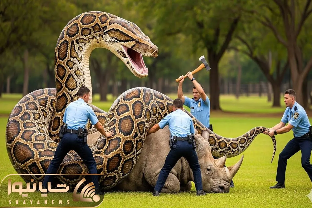 در این ویدیو که با هوش مصنوعی تولید شده می بینید تلاش های تیم نجات رو که کرگدن رو از چنگ مار پیتون رها می کنه