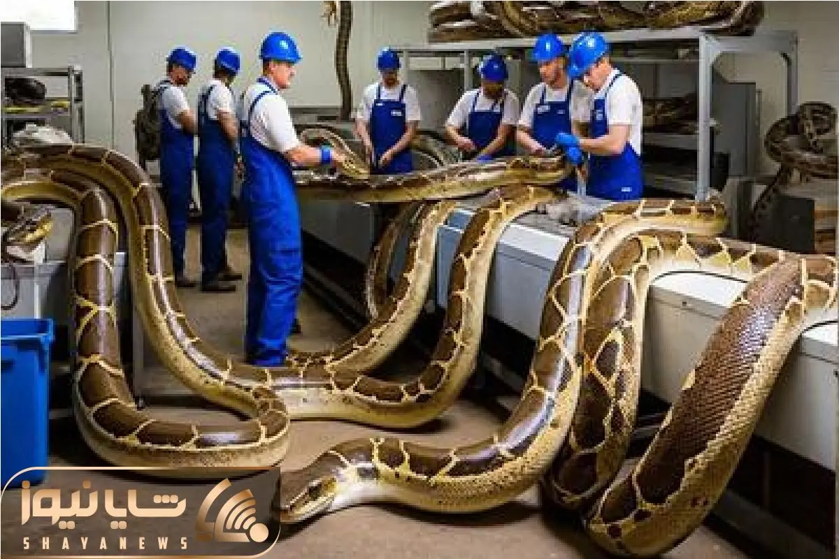 فرآوری مار؛ پیتون غول میکنن نه برای خزیدن برای طلای تو پوست و گوشتش