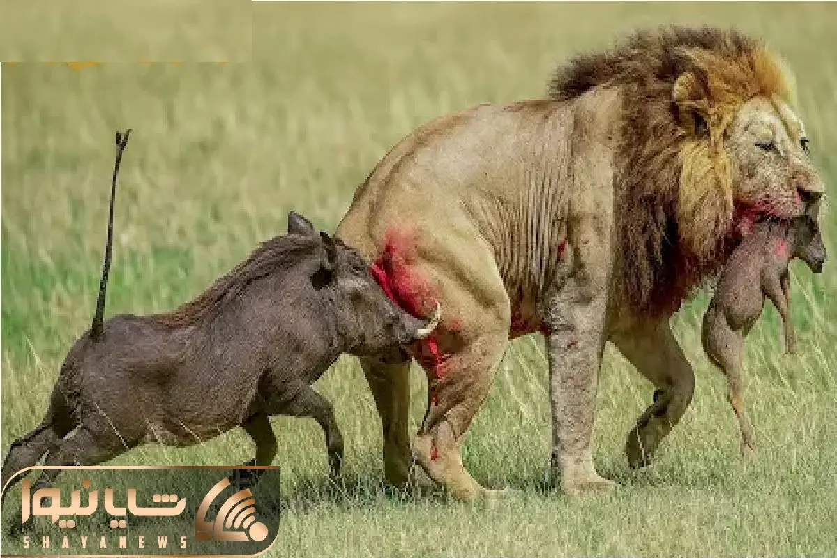 مستند حیات وحش؛ شیر با مکر تمام بچه گراز گروگان گرفت مادرشم شکار شه