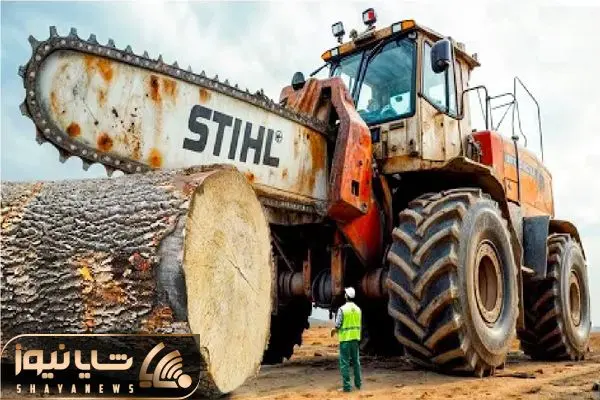 ابزارآلات غول پیکر؛ مهارت های اپراتور بیل مکانیکی در برش درخت پس از تبدیل شدن به اره