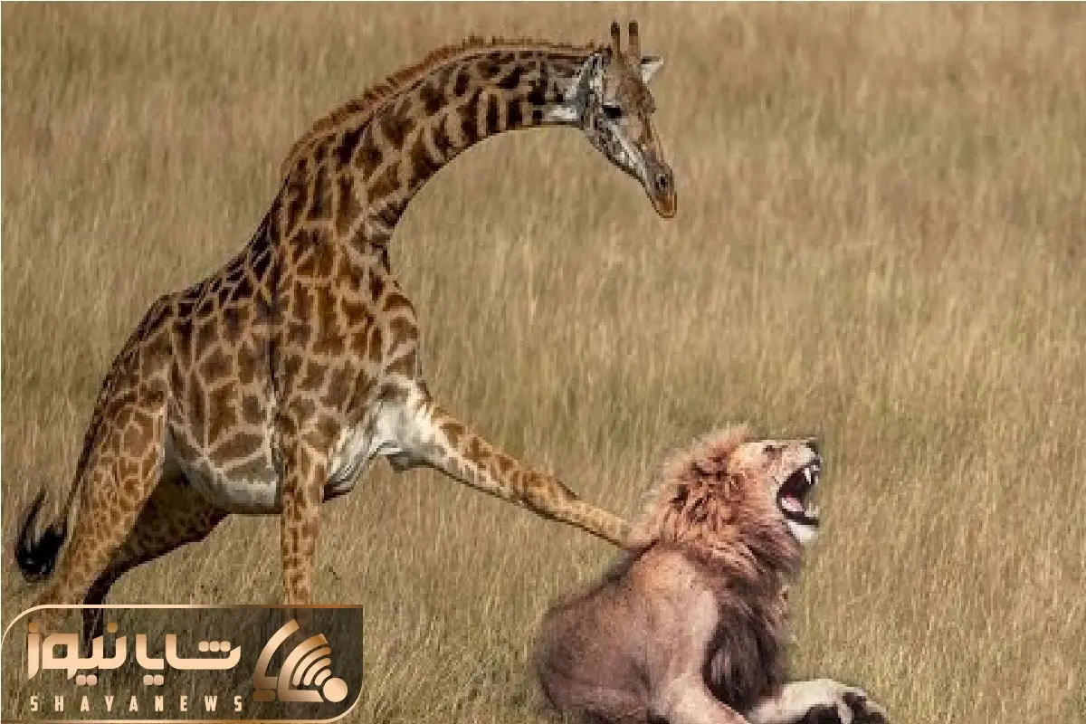 مستند حیات وحش؛ زرافه با رعشه از شکار شدن شیر مثل گوجه زیر پای دراز نازش لهید