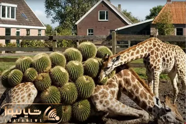 این ویدیو که با کمک هوش مصنوعی تولید شده تلاش تیم امداد رو نشون میده که برای اینکه زرافه رو از شر کاکتوس ها نجات بدن حسابی به دردسر می افتن