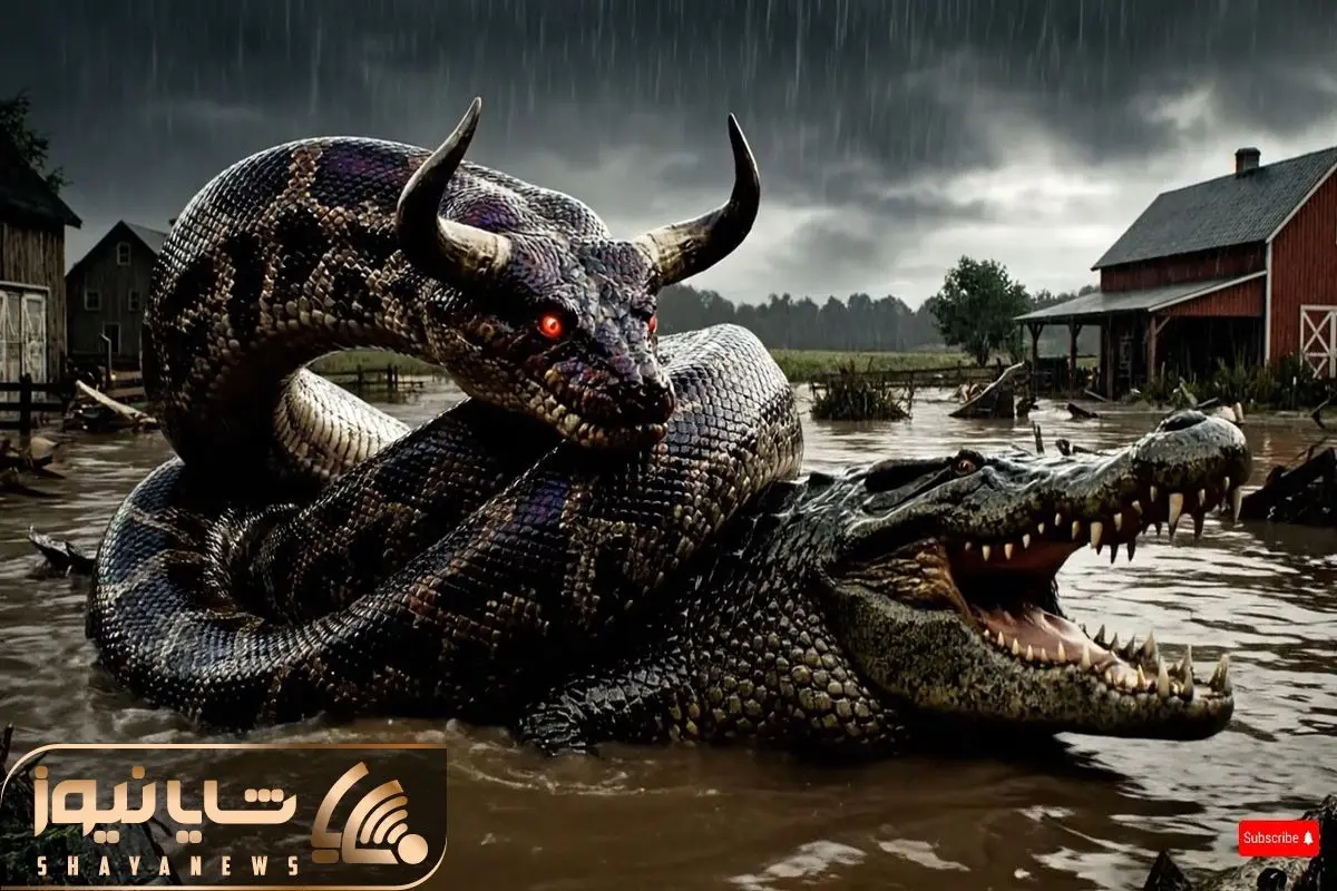 حیات وحش مصنوعی؛ امدادگرا می ترسن برن کروکودیل رو از چنگ مار پیتون خلاص کنن