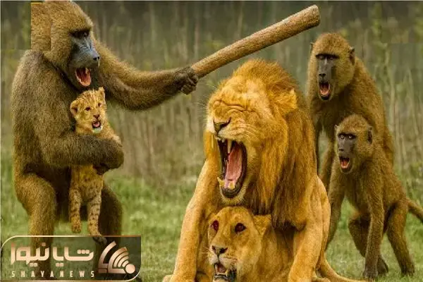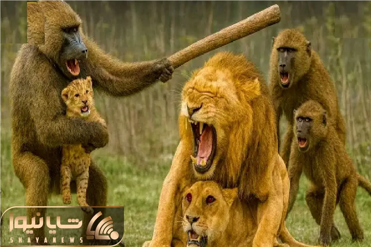 مستند حیات وحش؛ نبرد خلاقانه زور آرواره میان میمون و شیر برای توله دزدی