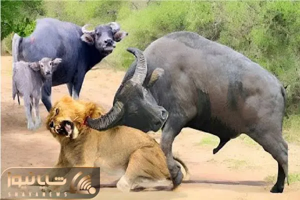 مستند حیات وحش؛ بوفالو غیرتمند شیری که چشم به گوساله اش داشت شرحه کرد