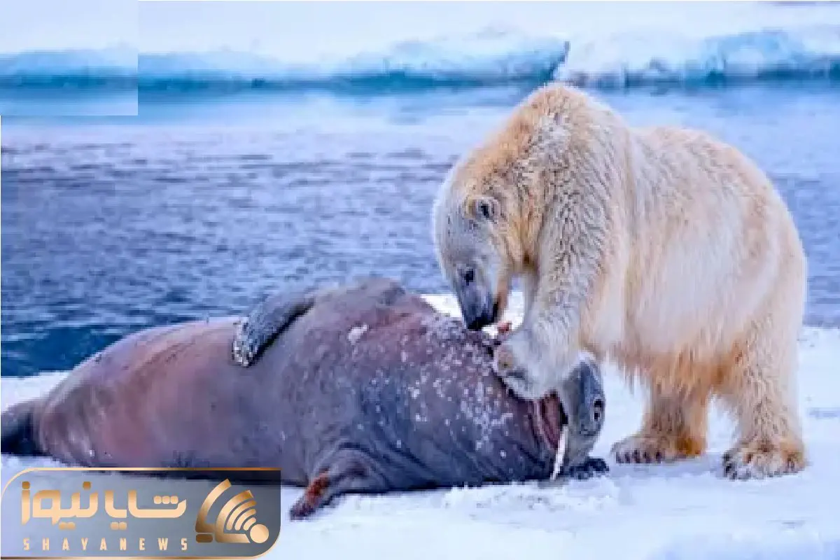 مستند حیات وحش؛ خرس قطبی قصی القلبانه گلوی فوک گیر کرده تو سوراخ پاره کرد