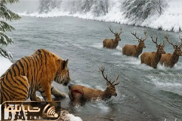 مستند حیات وحش؛ ببر خط دار گوزن مفلوک از دم گرفت شرحه اش کرد