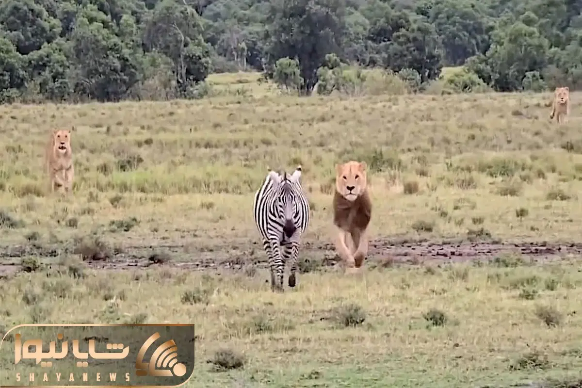 تعقیب و گریز گورخر با چند شیر رو به نظاره بنشینید وقتی گورخر خیلی زود خسته می شود