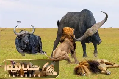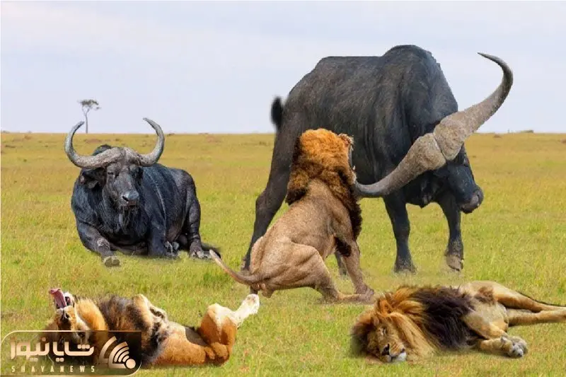 جذابیت حیات وحش / بوفالو برای حراست از گله شیر فراری داد