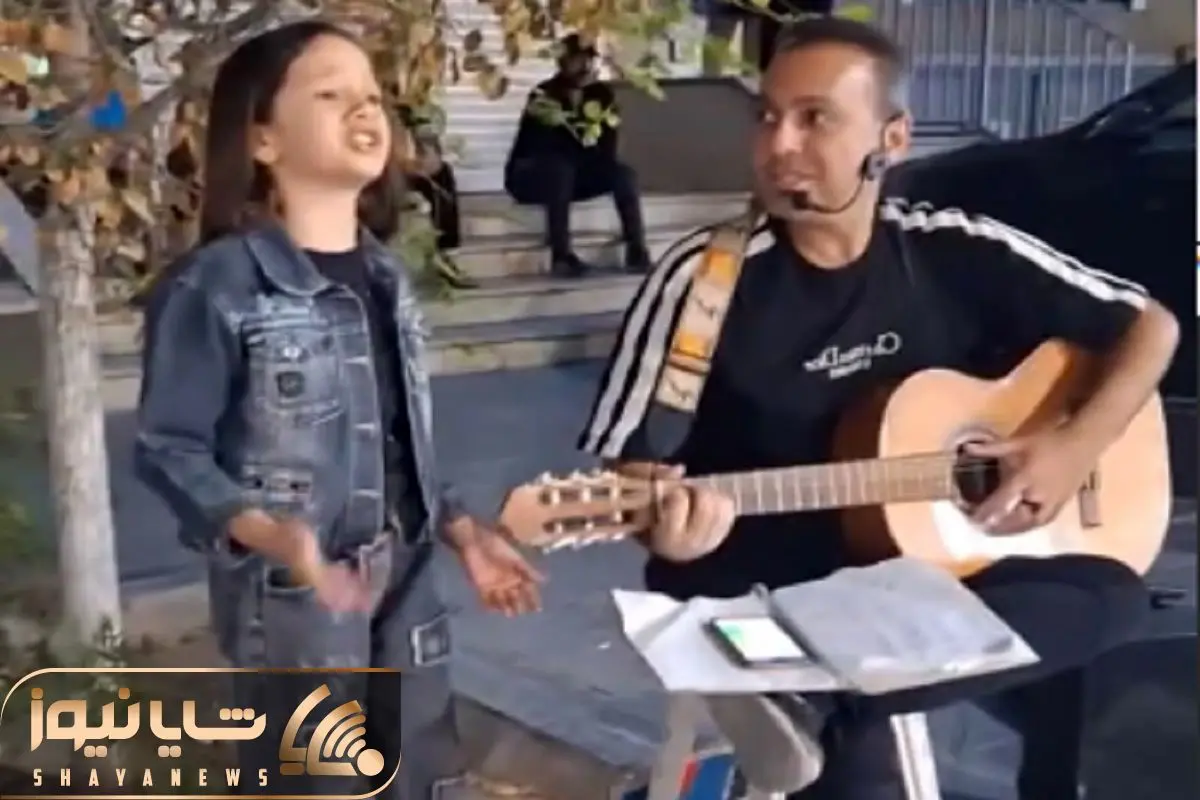 آواز خیابانی؛ دختر چشم ابرو مشکی کوچک اومد پیش خواننده گفت تا براش بزنه و اون بخونه