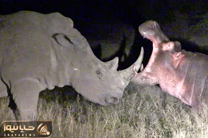 در نیمه های شب دو غول حیات وحش یعنی اسب آبی و کرگدن با هم رو به رو شدند که البته پایانی مسالمت آمیز داشت