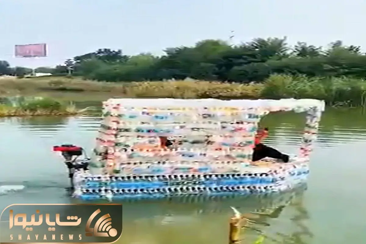 معماری خلاقانه؛ با بطری آشغالی قایق ساخت یه موتور نصب کرد مردمو سوار کرد پول زد جیبش