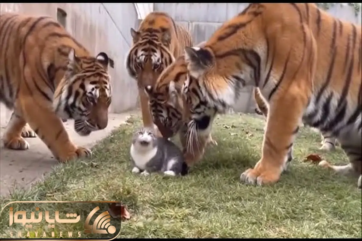 این ویدیو عجیب و خنده دا هست و در آن می بینید که ببرهای بزرگ چجوری از یک گربه حساب می برن