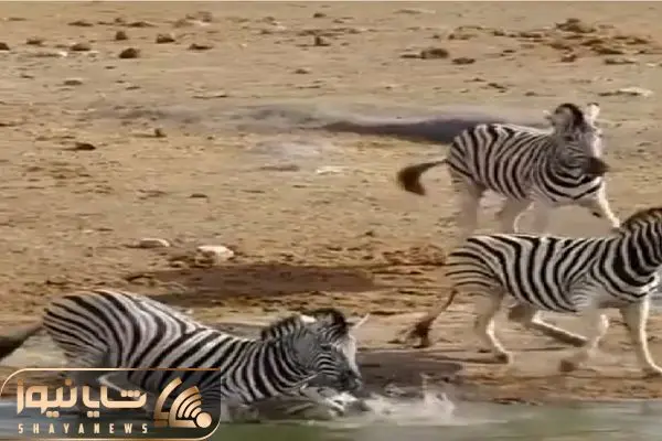 مستند حیات وحش؛ گورخر عصبی کله بچشو میکنه زیر آب