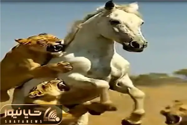 حیات وحش مصنوعی؛ استقامت ستودنی اسب سفید برای فرار از چنگال شیر