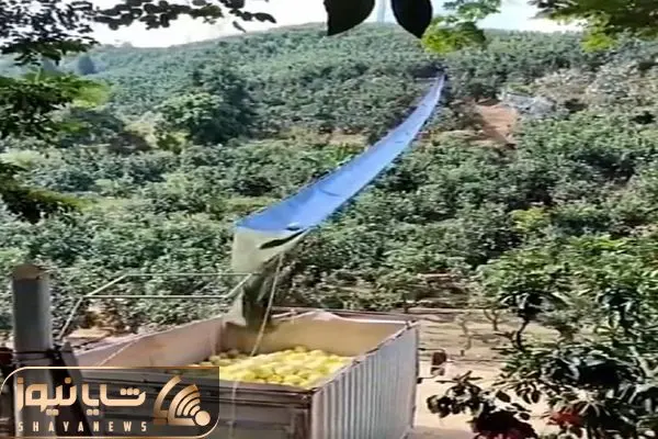 کشاورزی نوین؛ برا میوه ها سرسره زدن میفتن لیز میخورن تو جعبه وانت بدون نیاز به آدم