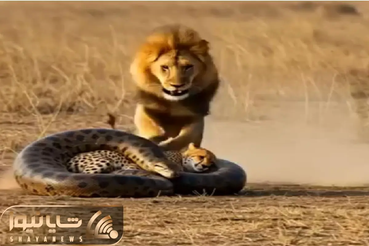 حیات وحش جذاب؛ پیتون غول شبیخون زد پلنگ ببلعه شیر پاره اش کرد