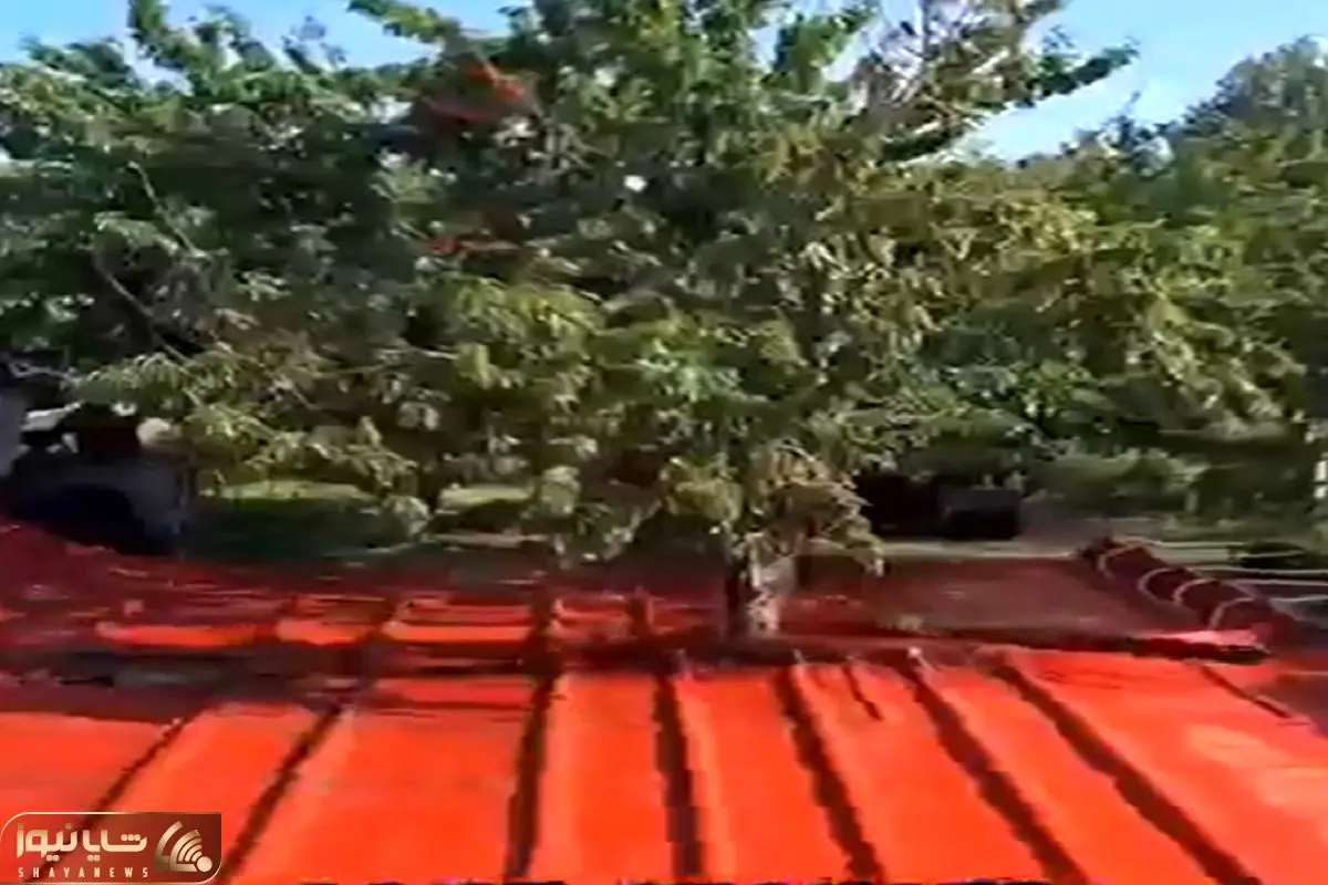 کشاورزی نوین؛ برا درو زیر درخت گونی پهن کرد با دستگاه لرزون قرش داد کل میوه هاش ریخت