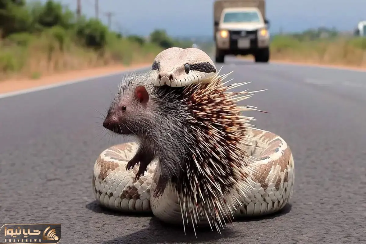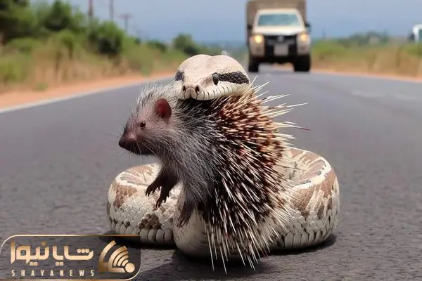 جذابیت حیات وحش؛ ماشین شد کارمای جوجه تیغی از رو مار رد شد