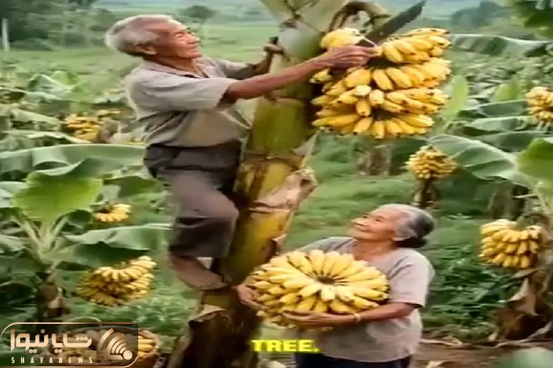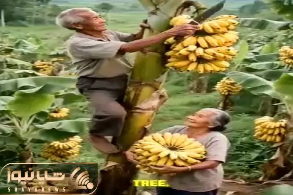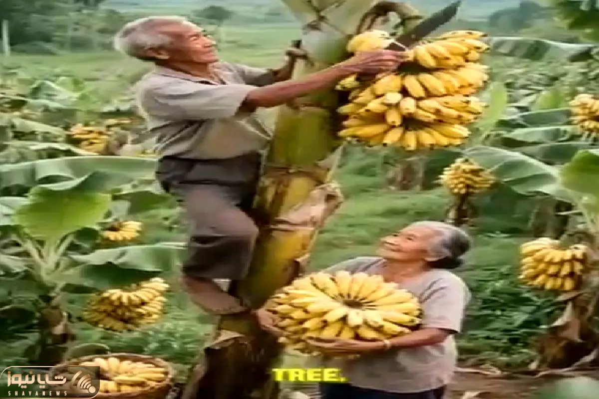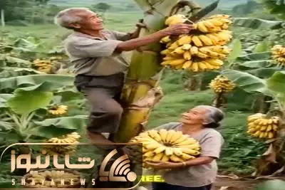 کشاورزی نوین؛ زن و شوهر پیر اولین باره که موز میبینن مرد عین تارزان از درختش بالا رفت