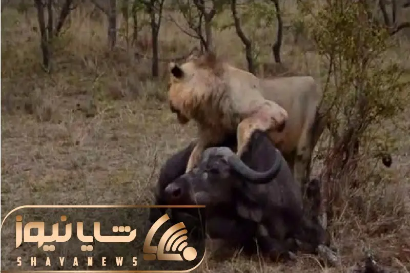 مستند حیات وحش؛ شیر سباع بوفالو رو تنها گیر آورد خرخرشو جویید گله رو سیر کنه