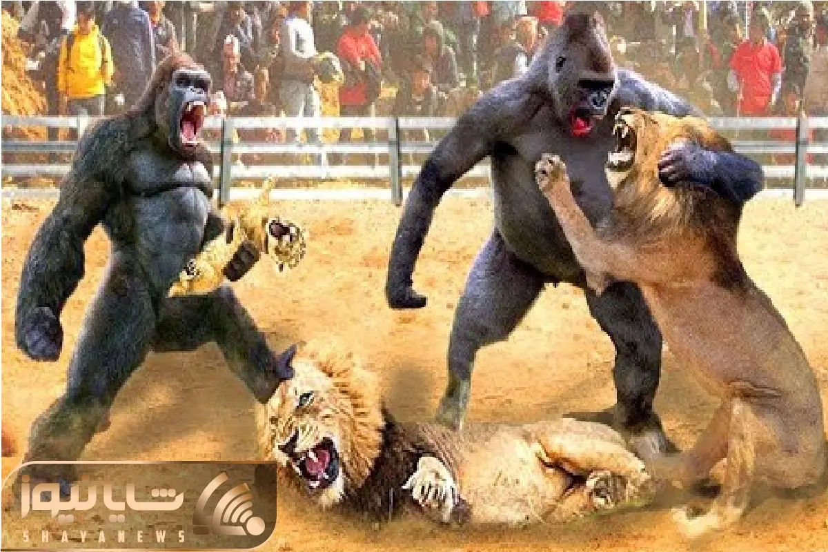شاهکار حیات وحش؛ نزاع استراتژیک گوریل و شیر برای اثبات برتری