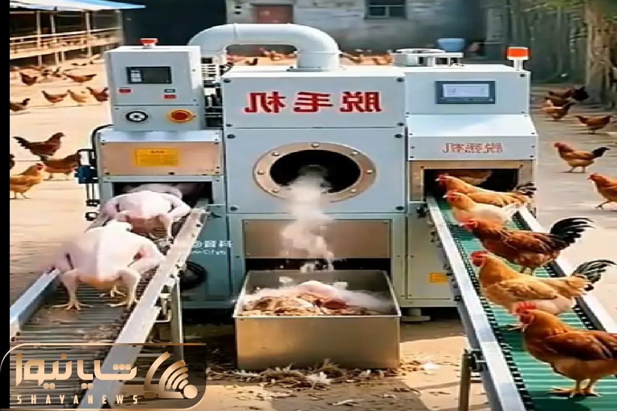 دامداری نوین؛ دستگاه دو کاره هم زمان مرغا رو هم ذبح میکنه هم پرچینی درد اصلا نمیفهمن