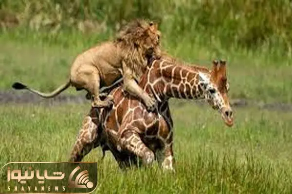 ذکاوت حیات وحش/شیر با تاکتیک محسوس از گردن زرافه 10 متری بالا میره