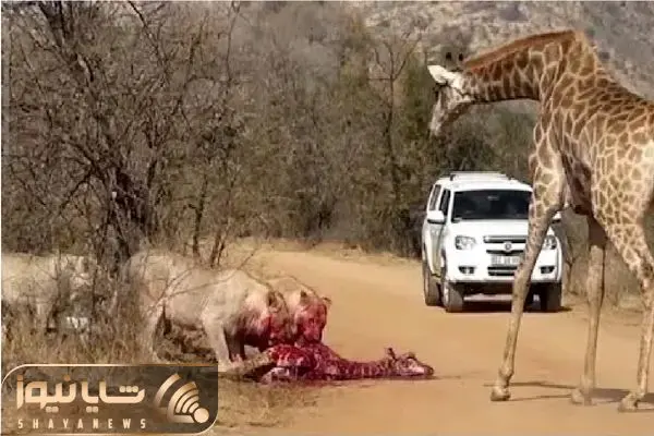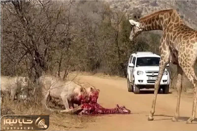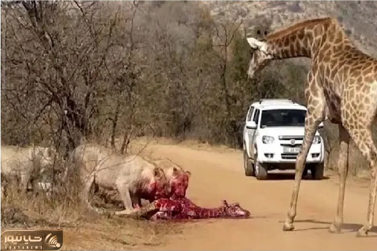 جذابیت حیات وحش؛ زرافه برای نجات نوزادش به دوئل با شیر می رود