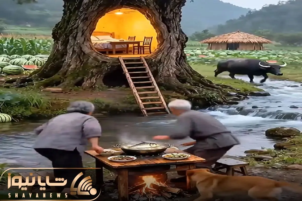 معماری خلاقانه؛ روستا طوفان خیزه تو تنه درخت ریشه دار خونه ساخت پریدن توش هیچیشون نشد