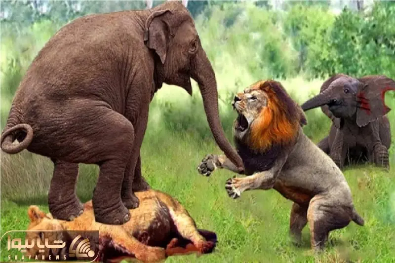 نبرد شیر و فیل با حرکات نمایشی با خرطومش ساخته شده توسط هوش مصنوعی...