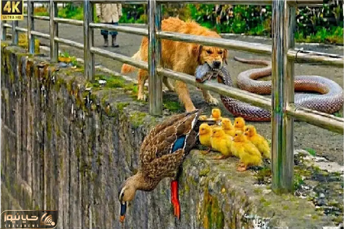 حیات وحش مصنوعی؛ سگ جسور ناجی اردک و جوجه هاش شد