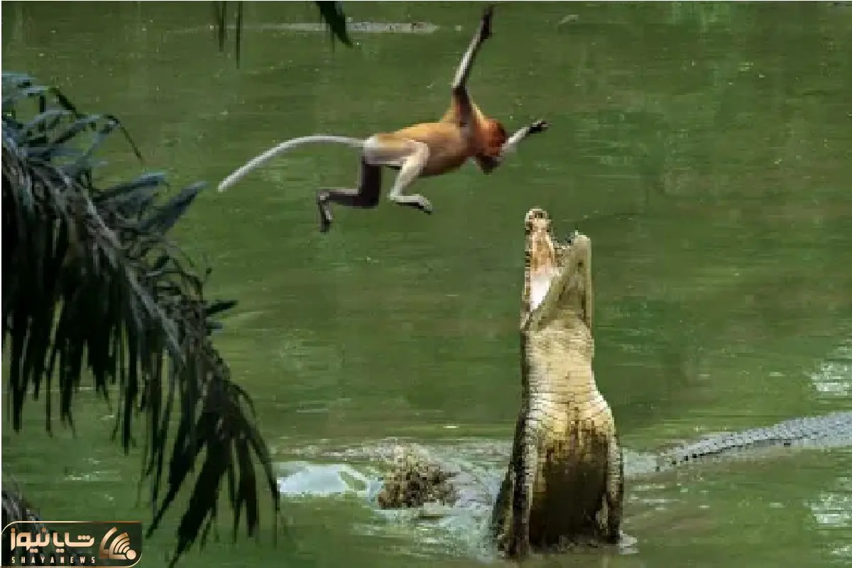 مستند حیات وحش؛ میمون بیخبر مستقیم داخل تله کروکودیل میپرد