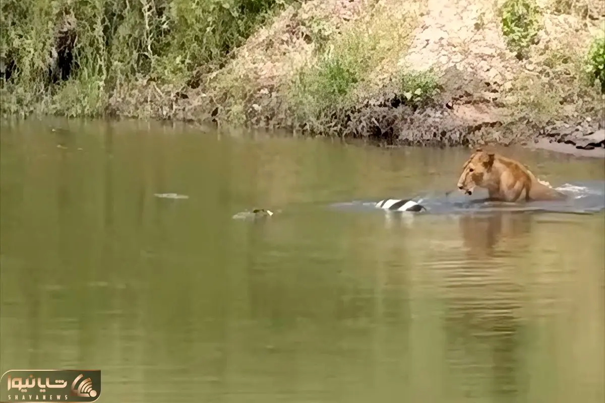 شیر برای اینکه بتونه شکارش رو به دست بیاره حتی به مصاف تمساح اونم تو قلمروش میره
