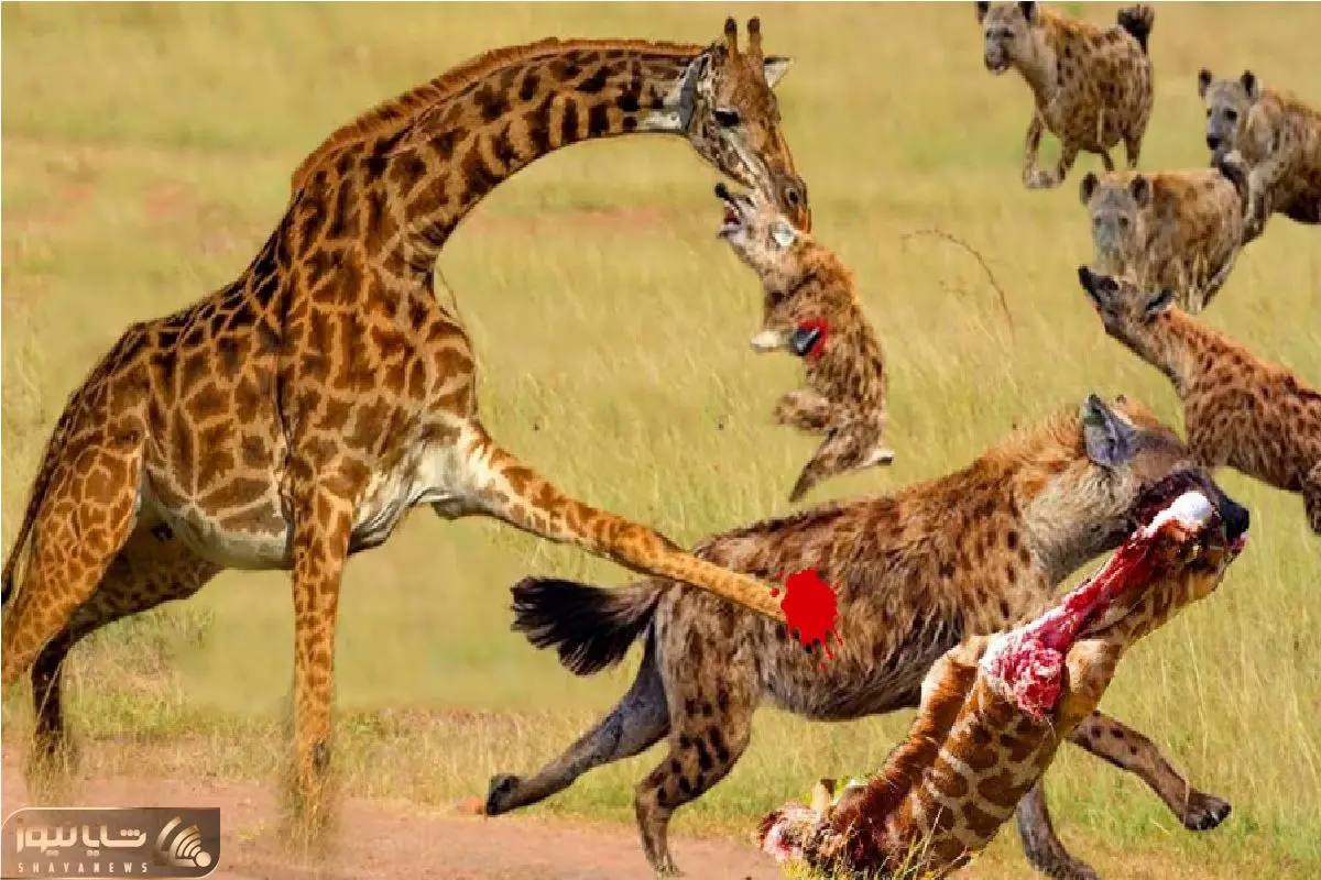 نبرد حیات وحش/ زرافه با یه پشت پا کفتارو طلسم کرد