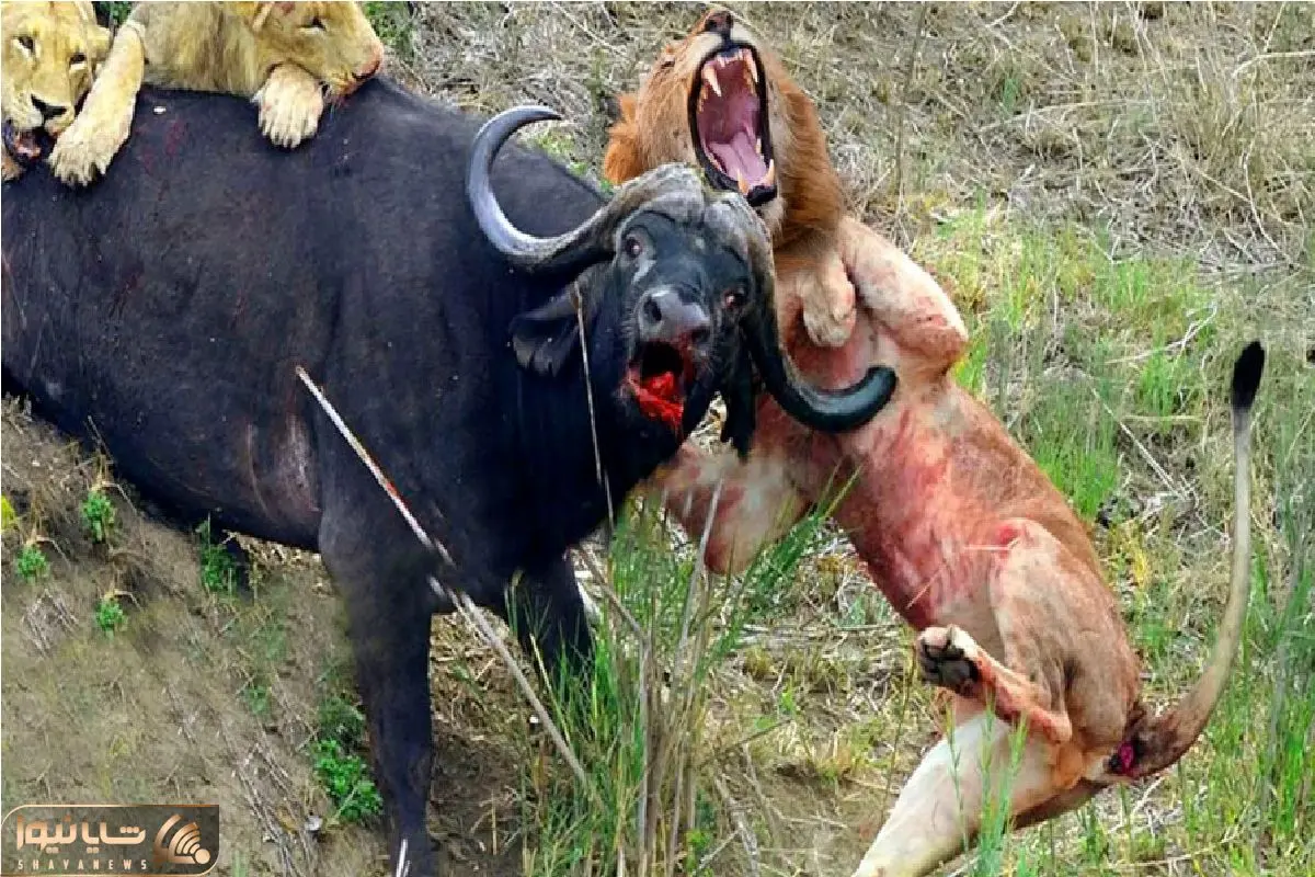 حیات وحش بی رحم؛ شیر با اون همه ابهت شد کیسه بوکس بوفالو