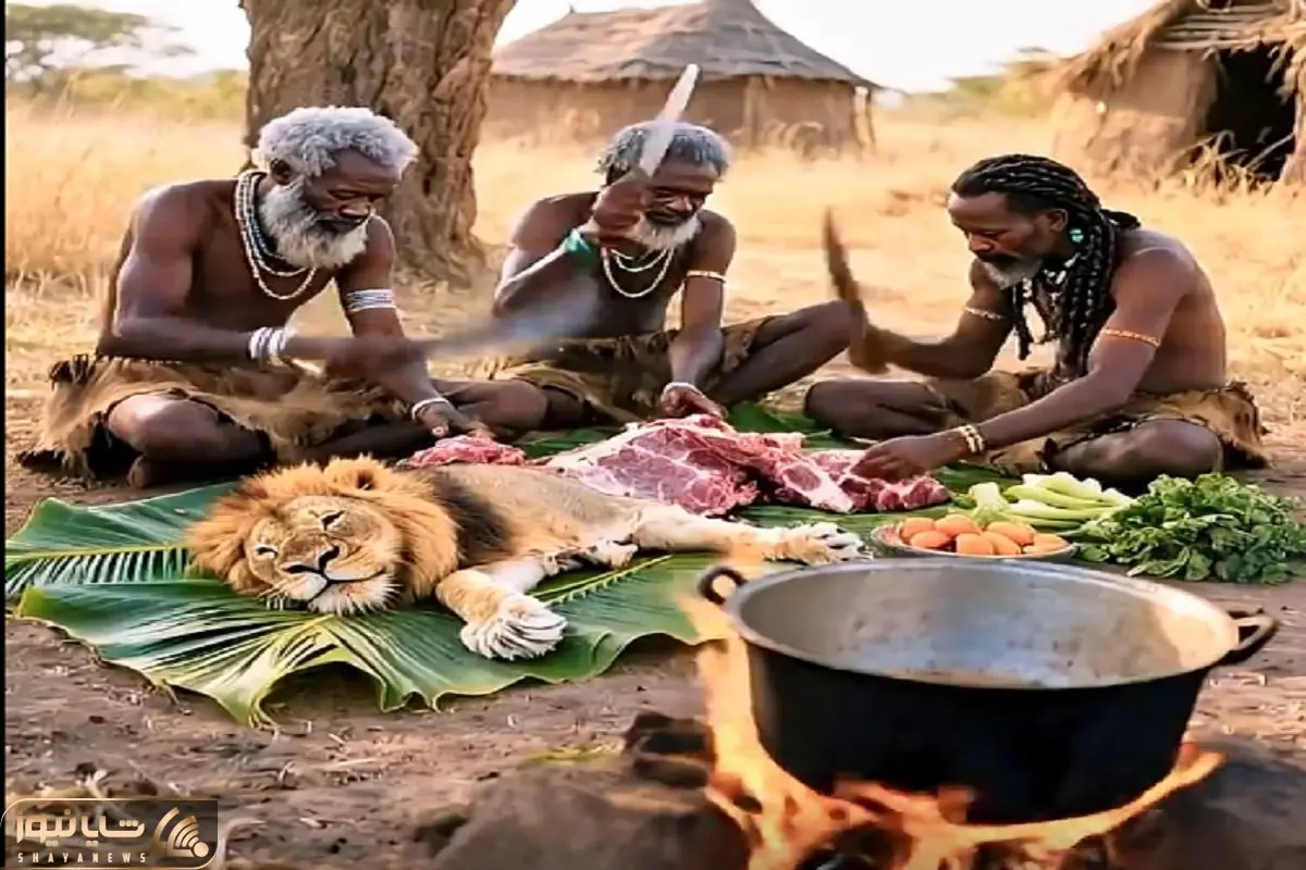 سفره وحشی؛ بربرها شیر شکار کردن شکمشو دریدن با دل و روده اش جغوربغور درست کردن