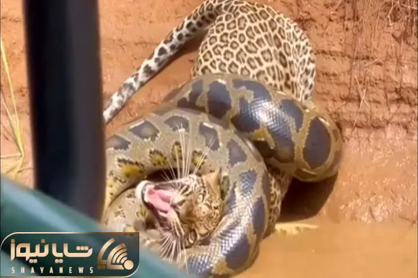 مستند حیات وحش؛ پیتون محکم پیچیده دور پلنگ و داشت خفه اش می کرد